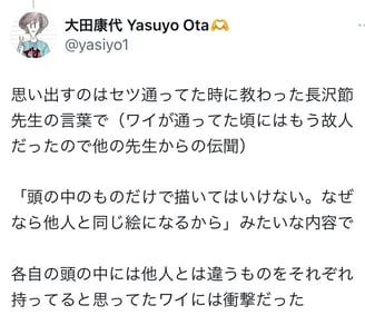 個人的な経験として、小学生の頃に同級生と自宅のベランダから望んだ小山を描いたことが思い出されました (考え抜いた一手、というよりがむしゃらに「奮闘」してしまっているのですが) 。確か、夏休みの宿題だったと記憶しています。山の色がなかなか決まらない私は水彩絵の具と格闘していました。ビリジアンではなくて茶色とか紫とか白とか、油彩と水彩は違うというのもあまりよく分からないまま、様々な色を紙に定着させて「暑さで霞んだ山」を描こうとしていました。ビリジアンを置いて、違って、黄土色を置いて、違って、青を置いて、また違って、茶や紫や白までやってみたりして、自分なりに納得する色に辿り着いた後、それを横目で見ていた同級生は最終的に紙の上に現れた私の山の色を真似して塗って得意げに言いました「あなたが苦戦して時間をかけた色を私は一瞬で出せた。これで同じ山の色だ」。かなりひどいですね。でも私には分かっていたのでこう言い返しました「山の稜線を見てよ。私の山にはこの色の重なり、黄土色とか青とか茶とか紫とかが現れている。これはあなたの絵にはない」。いまだに思い出すくらいだから、自分が苦心して獲得したオリジナルの色を盗用されたことに少なからず傷ついていたんですが、結果、教室に貼り出された私の夏の山は、表現したかった夏の埃っぽい空気をしっかり孕んでおり、その同級生の絵とは全然違う絵であったことは間違いありませんでした (小学校の頃は絵の上手い子として認知されていたので、彼女が真似したがったというのもあるわけですが)。 その子の名誉のために言うと、彼女はその後、英語を猛勉強し、留学先でたまたま隣り合ったまったく別の国の男性から一目惚れをされ結婚し、また一からその別の言語を苦労して習得して海外で暮らしているそうです。人間の時間は各々の必要なことに振り分ければ良いんです。しかし、戦っている土俵が違っても、その道程に思いを馳せ敬意を払うことは忘れずにいたいのですが、そんな道のりを踏みにじるかのように作品を金儲けの道具にしか思わない人がアート市場に出現していることは嘆かわしいことです。→参考記事:雑記 2023/08/17 HOW TO「アート作品の手放し方」