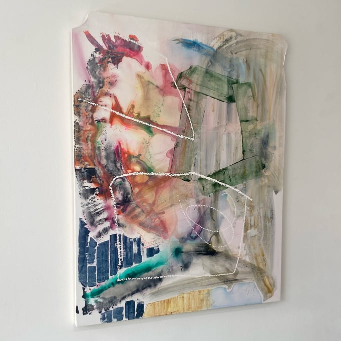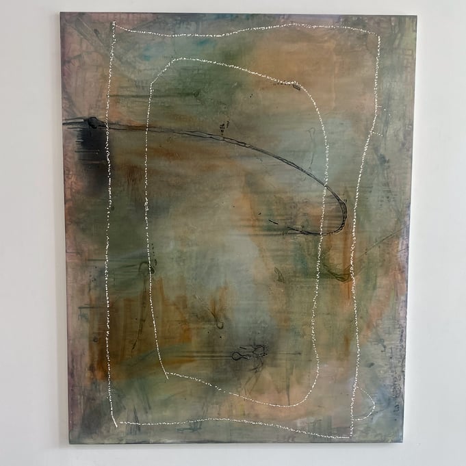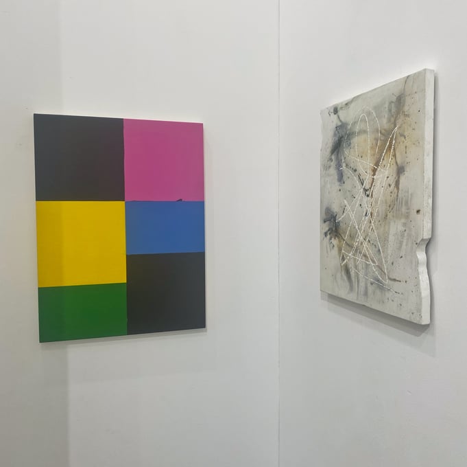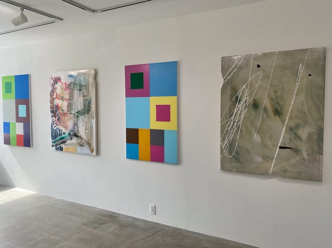 抽象画を追求し続ける奥天さんと小左さんは、それぞれが積み重ねてきた時間と空間を作品に昇華出来るほどに目を凝らして見てきたのだと思います。そして点景とは、添えられるようなアクセントでありながら、時に物語を生み出し、作品に深みを与える重要なものです。全体と部分。俯瞰と凝視。よく見た者だけが点景を加えることが出来る。