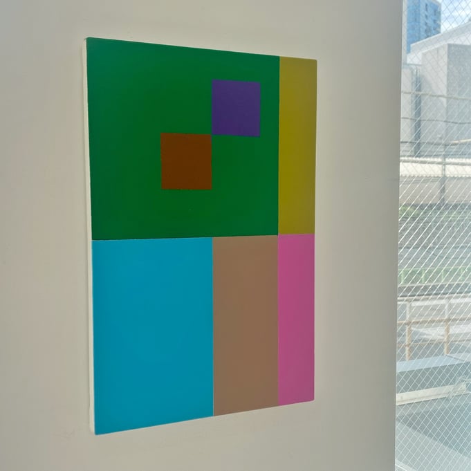 小左さんの「操縦 "Manipulation"」は観る角度によって、四角いパーツが折り紙のように見えたり、積み木のように見えたり、と厚みが違って感じました。