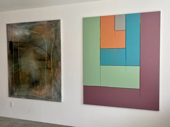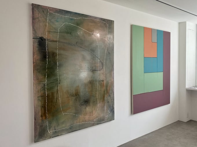 二人の接点は、19歳の時に同じ美術予備校に通っていた時点にまで遡ります。それもクラスが違ったため特段に親交があったわけではなかったそうですが、思いがけず再会し今に至るとのこと。一見して、タイプが全然違うように見える二人の作品ですが、上記のように作品の説明を試みると、捉えようとしているものに共通項を見出すことが出来ます。絵画の本質、とでも言うような、捉えどころのない「何か」。でも、確実に存在する「何か」。全ての作家もそれを目指しているのではないかと思えるような「何か」であり、鑑賞する側の私が言語化することなく感じ取る「何か」でもあります。私は何を持って「良い」絵画と思うのだろうか。そんなことを考えさせられました。