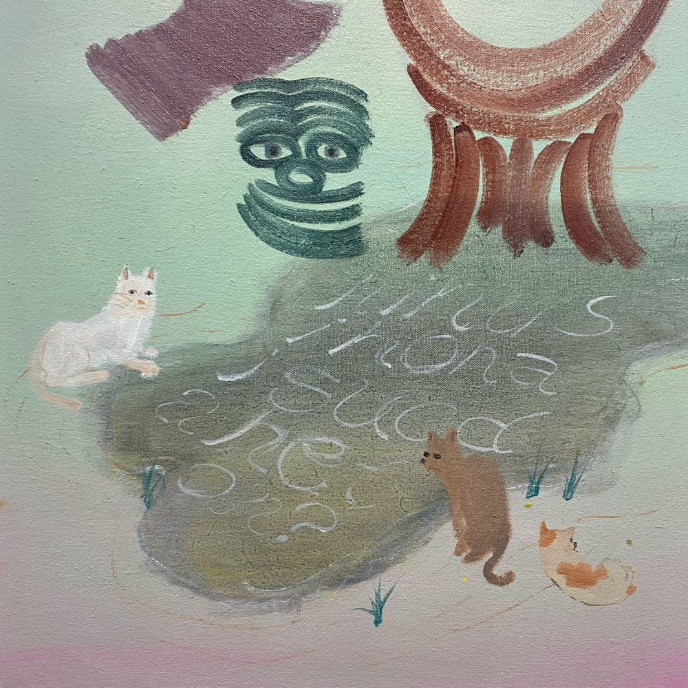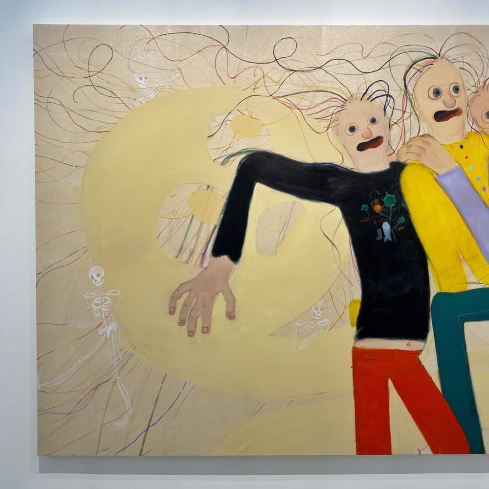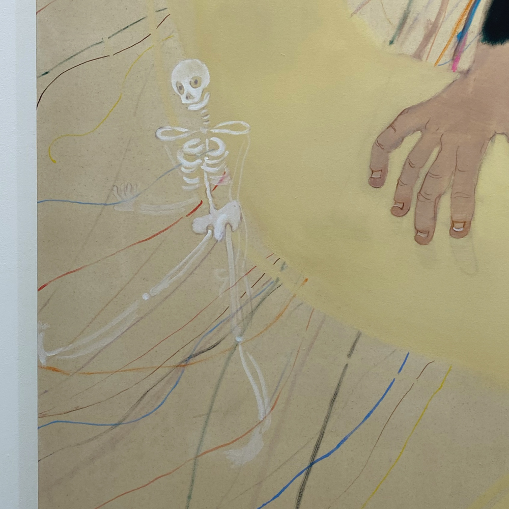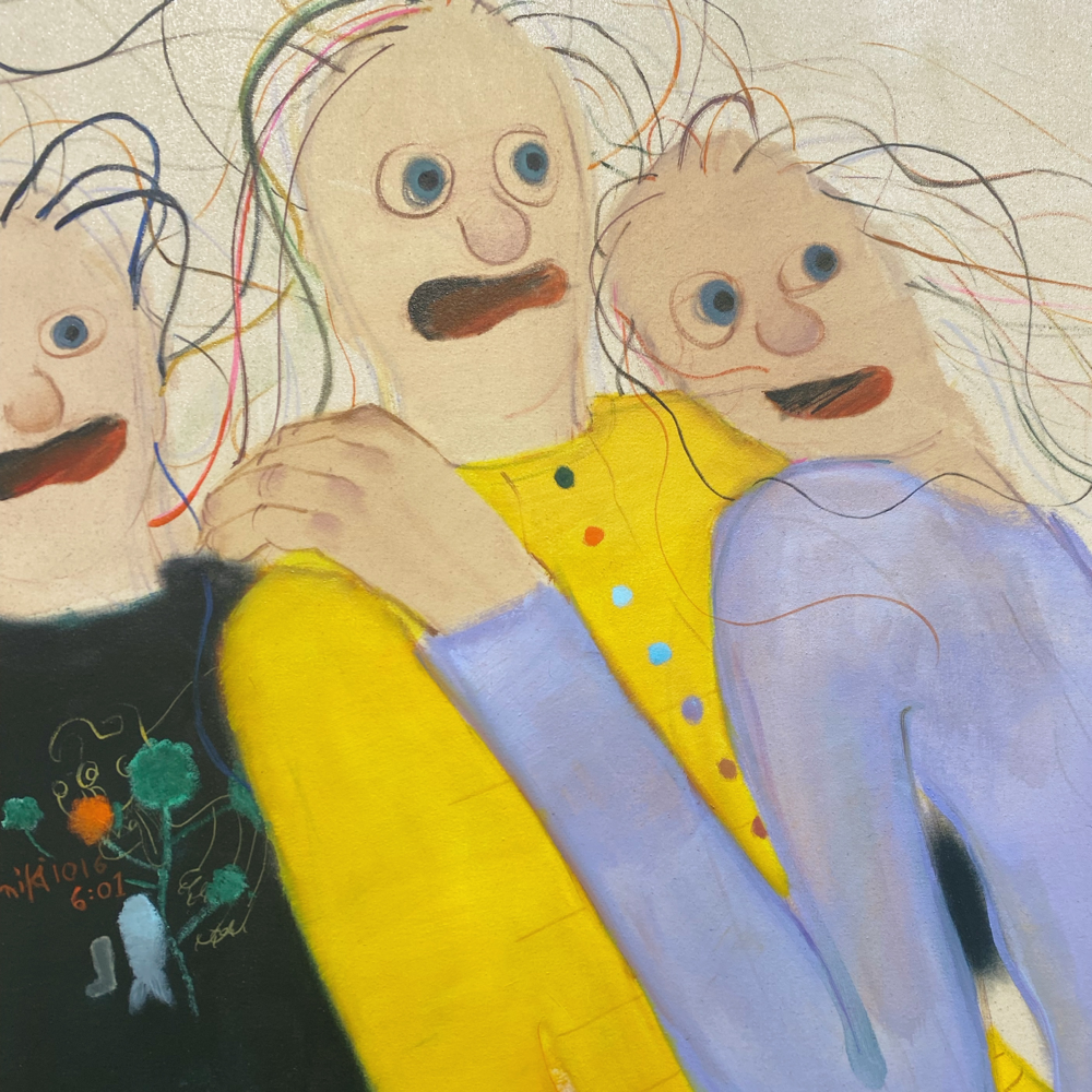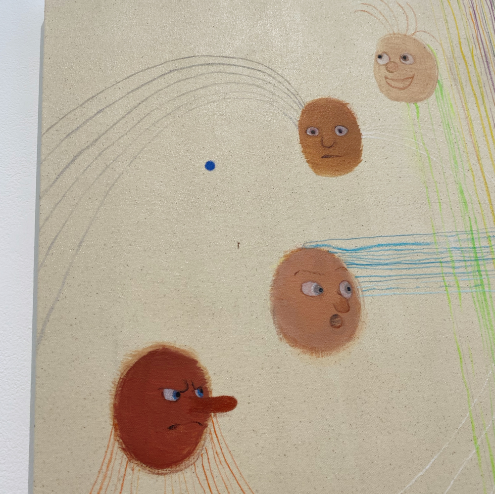 南谷さんと言えば「犬」という気もしますが、これは普通に見たらケルベロスかなと思いつつ、どこかそうじゃない感もあります。同じ犬の別の顔?なのか、顔の犬種もそれぞれ違うみたいだけど、同じ犬が首を振っているアニメーションにも見える。1つなのか無限なのか、哲学的な問いを突きつけられているような? キャンバス地そのままといった背景が羊皮紙の色にも思えて、未だ解読されていない中世の写本の挿絵を見ているような感じも受けました。