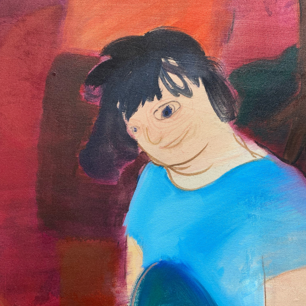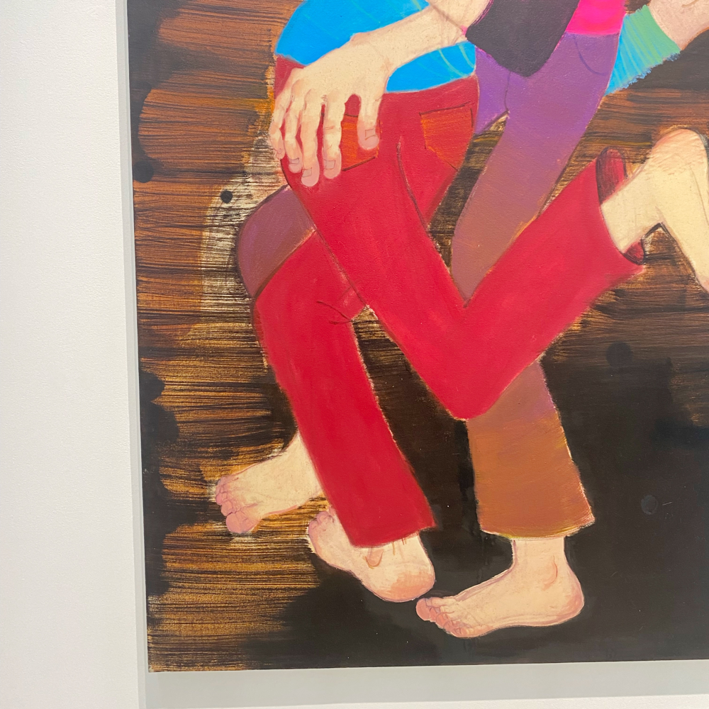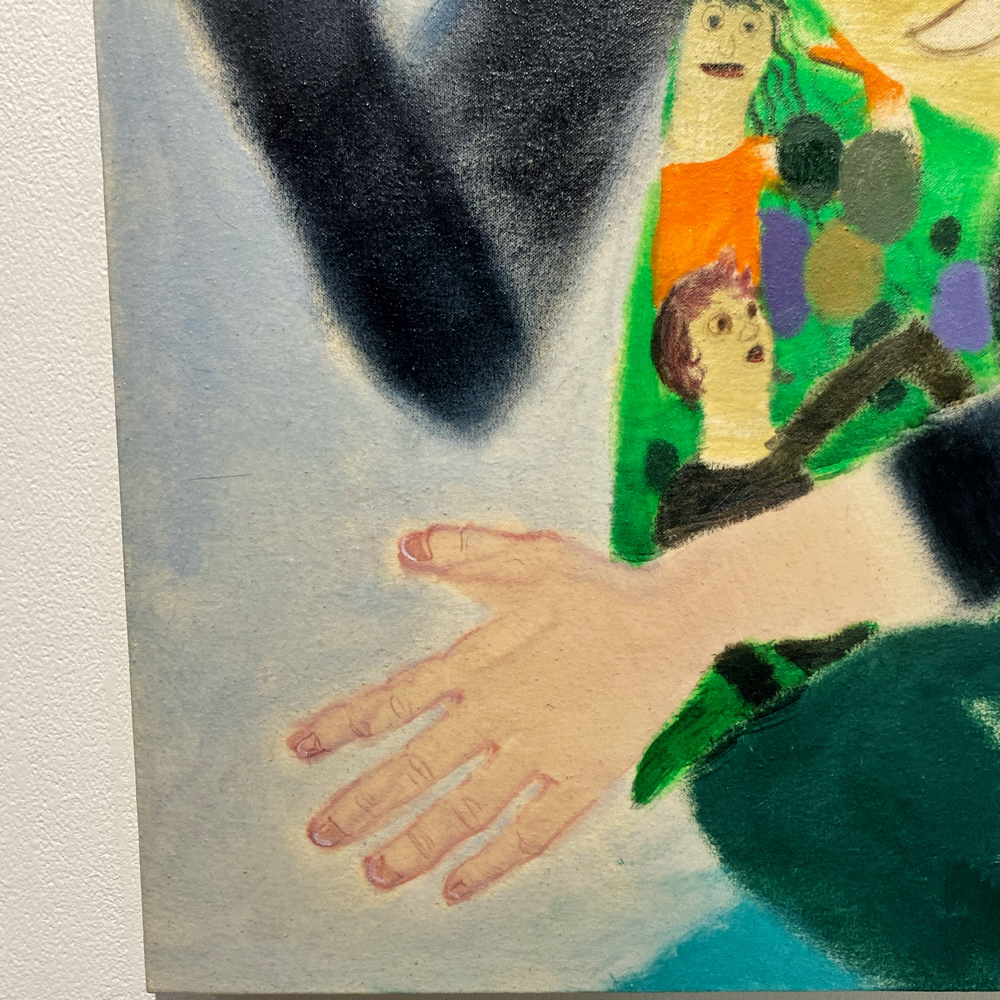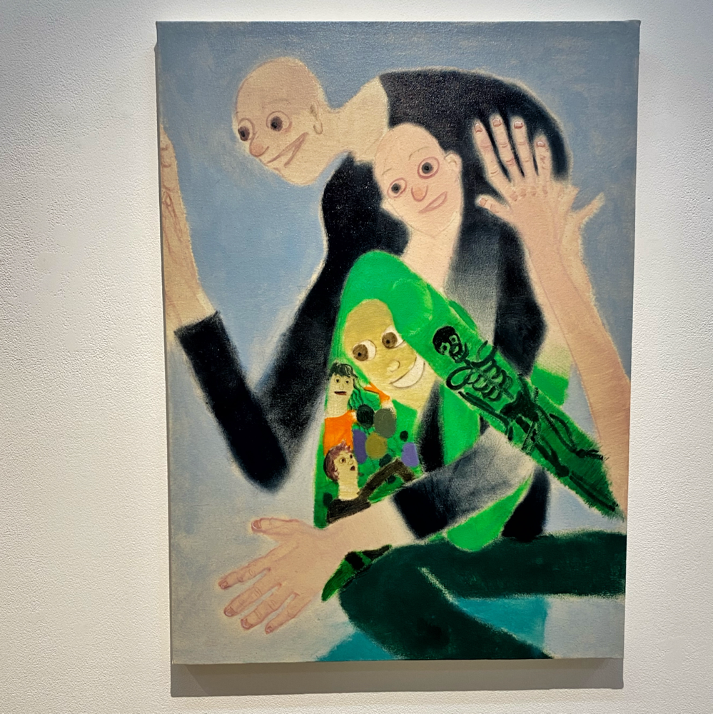 展覧会タイトル「黙劇」の説明にあった「なにかをしているふり」という言葉から考えて、絵の登場人物たちは舞台の上で演劇をしているのかもしれない。しかし、演劇性というような「わざとらしさ」のようなマイナス面を感じられないのは、南谷さん自身が「この絵はこう観て欲しい」という押し付けを持っていないからだろうな、と思います。