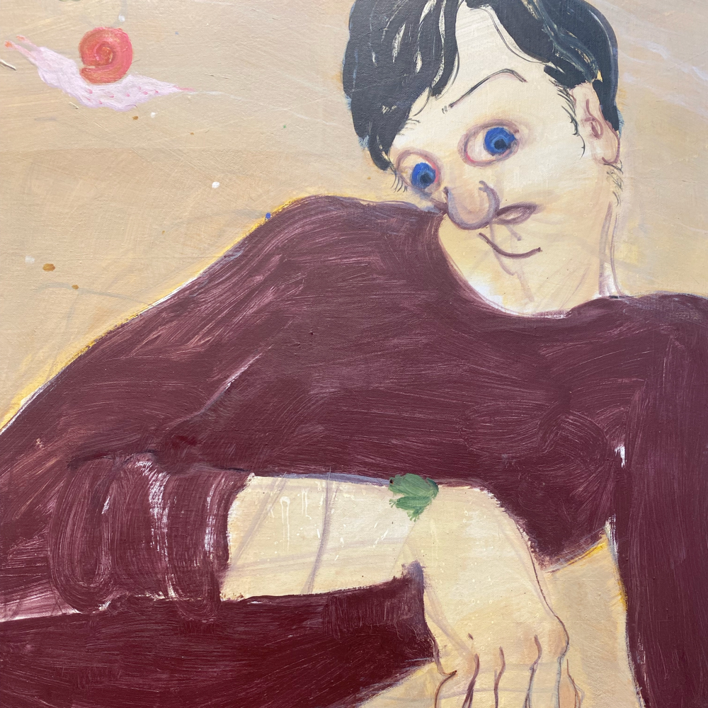 瞳の丸とカタツムリの殻と手に乗ったカエルと、今まで点在していた色々な色の丸と、、、。やっぱりどこか別次元の視点にフッと飛ばされる感覚があります。