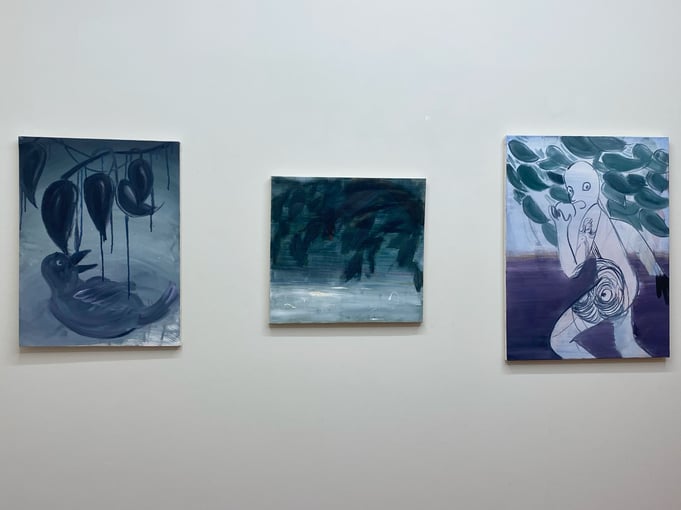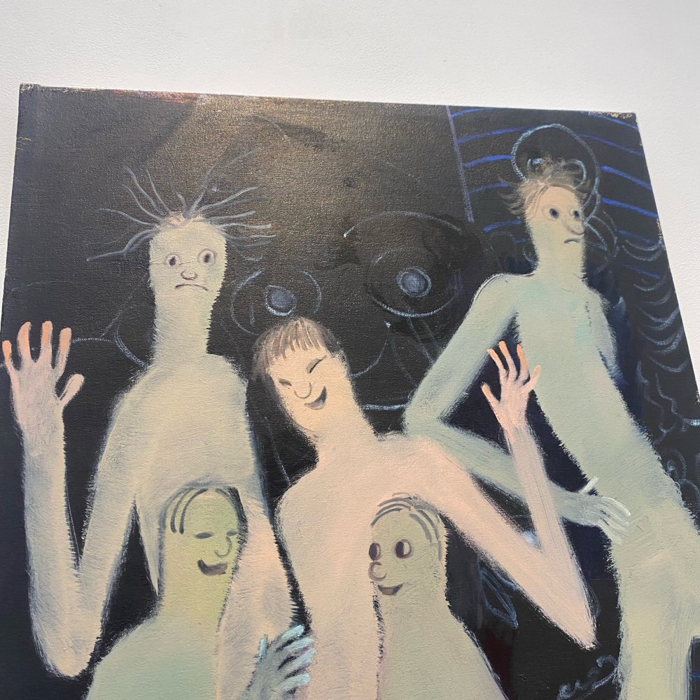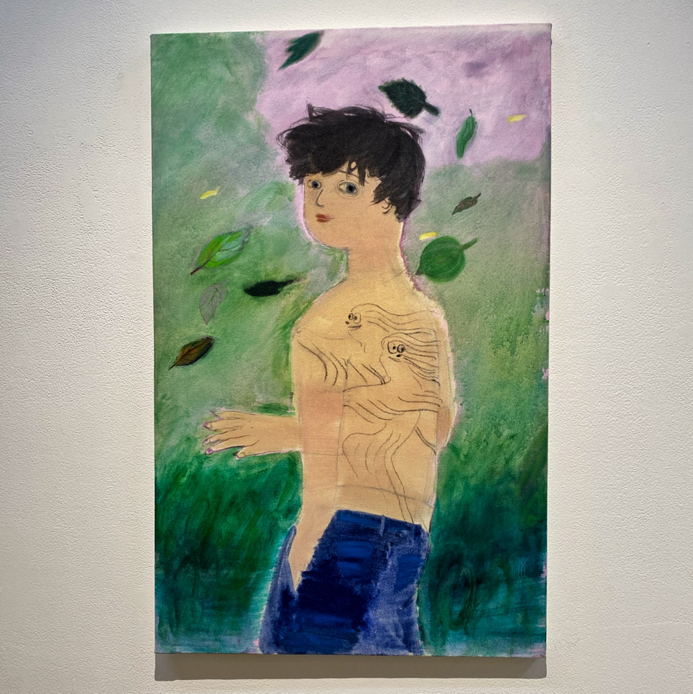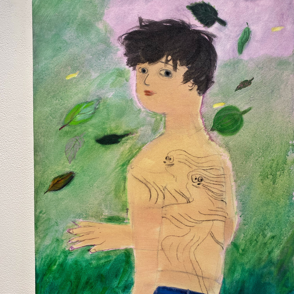 また雰囲気がガラッと変わる3作品です。「作品を見て、作者が誰か分かる絵は多いが南谷さんはそうではない」とBambinart Galleryの米山さんがおっしゃっていたことが思い出されます。なんとなく不穏な物語の一場面のようにも思えるけど、色が統一されていて綺麗で、こういう3作品をシックでシンプルな調度品と並べて部屋に飾ったらめちゃくちゃかっこいいんじゃないかと思いました。シノワズリなインテリアにも合いそう。