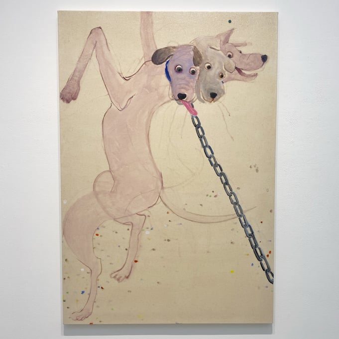 前回、前々回の感想と繰り返しになるかもしれませんが、南谷さんの絵を前にすると「「犬」とか「人」とか言える程度に具象化されているにもかかわらず、作品全体の持つ抽象性と、画面構成の完璧さ」に打ちのめされます。結果「すごい❗️」というような感想に終始してしまいがちです笑。