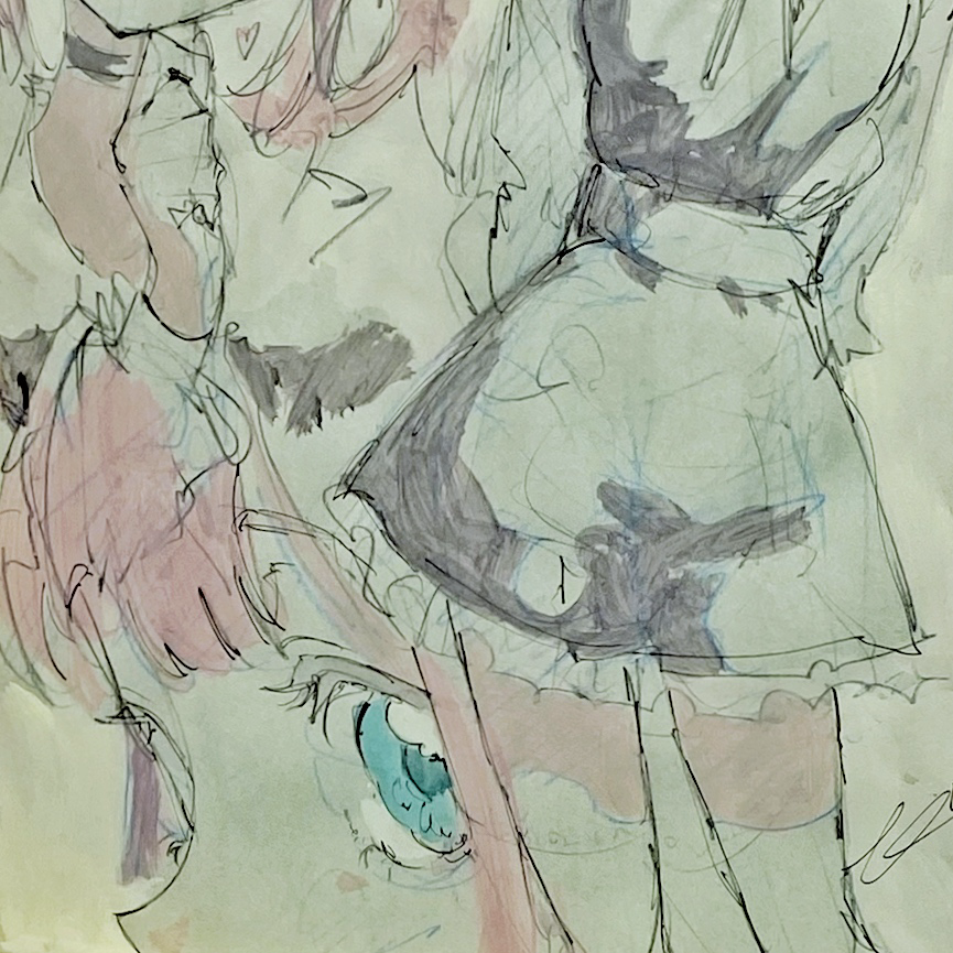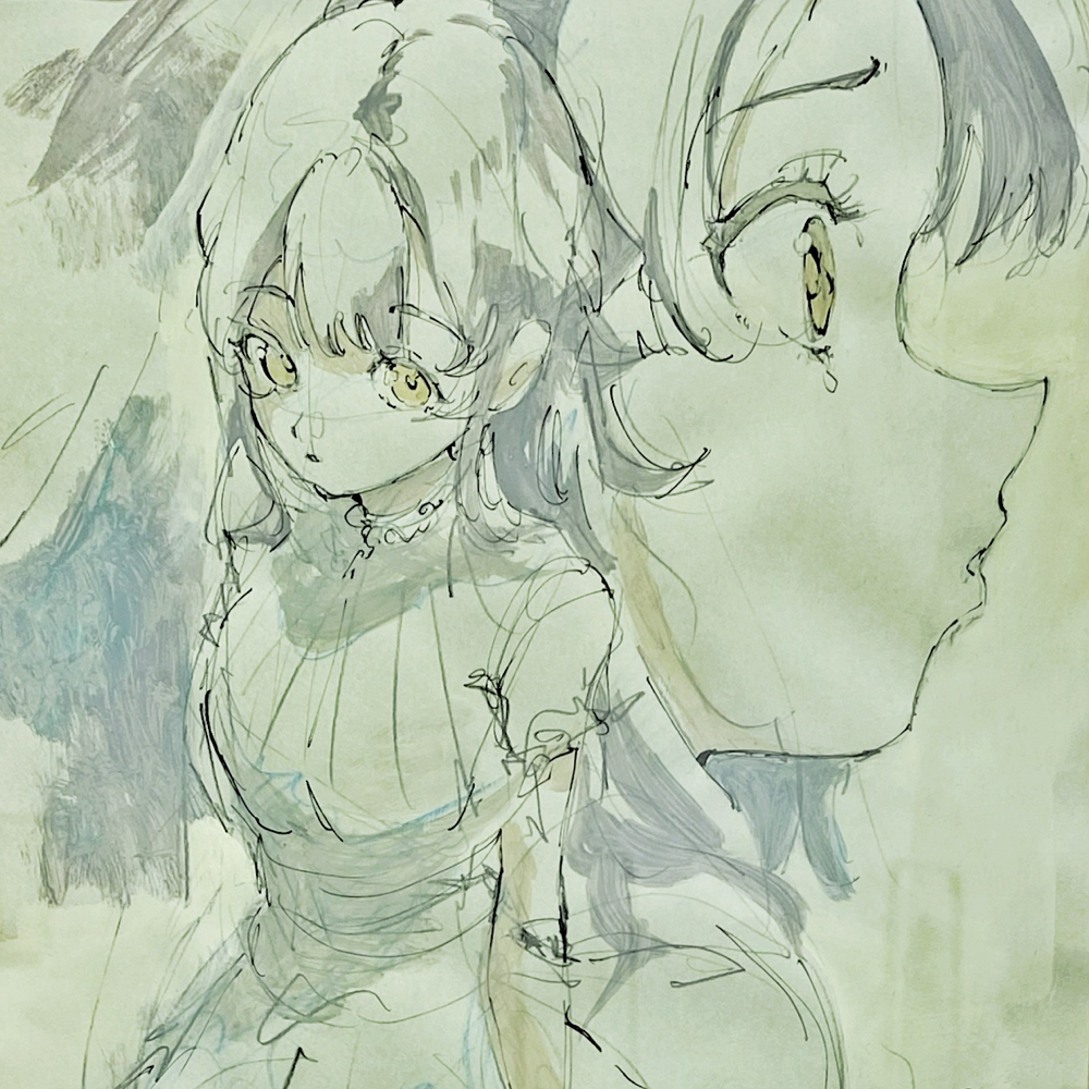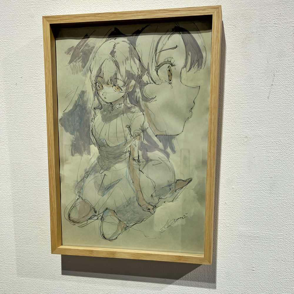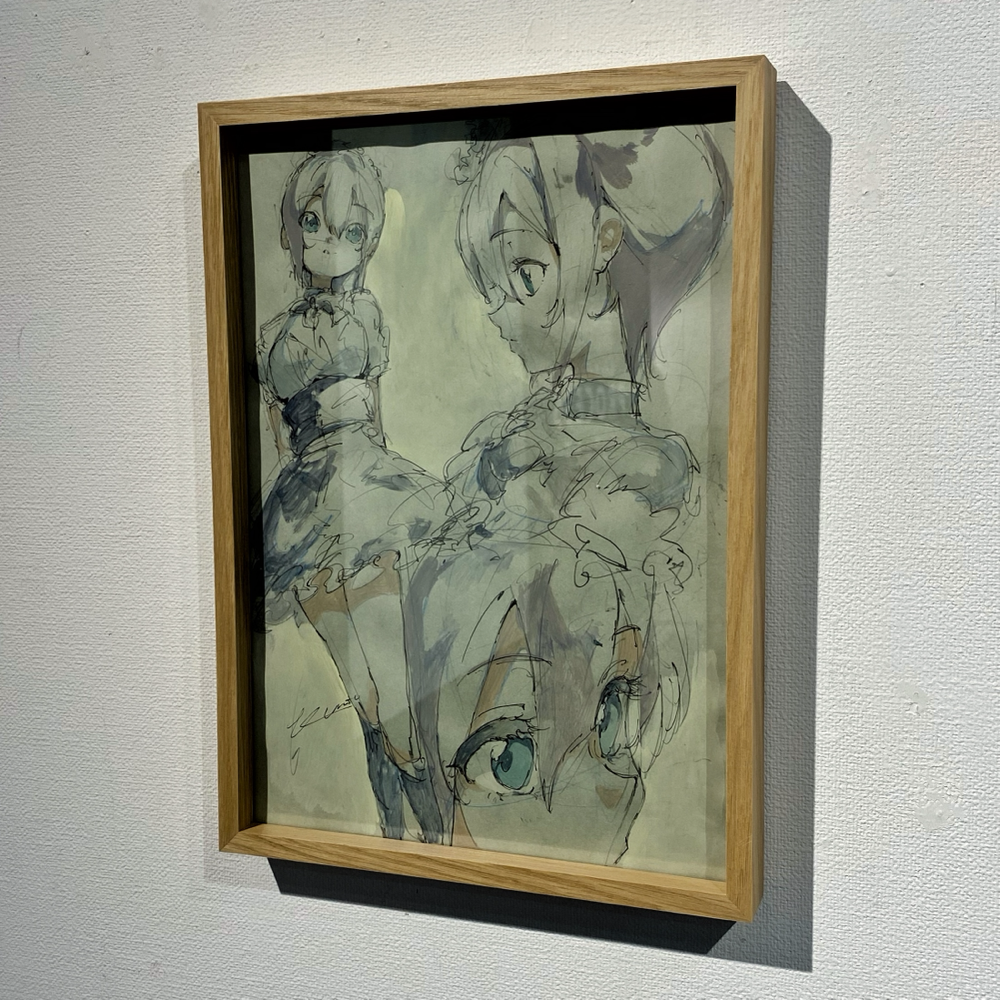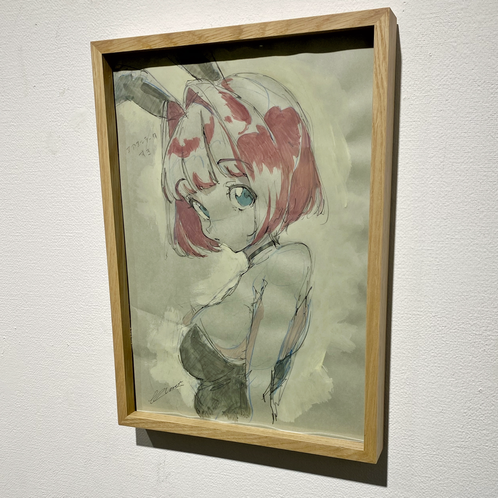ここで展覧会タイトルの「PROCESS」の意味が明らかになりました。アニメキャラクターの設定集のようなドローイング群や、油彩の下描き段階で用いられる「おつゆ描き」の時点のようなキャンバス作品は「過程そのもの」を表している、と捉えることが出来ます。
