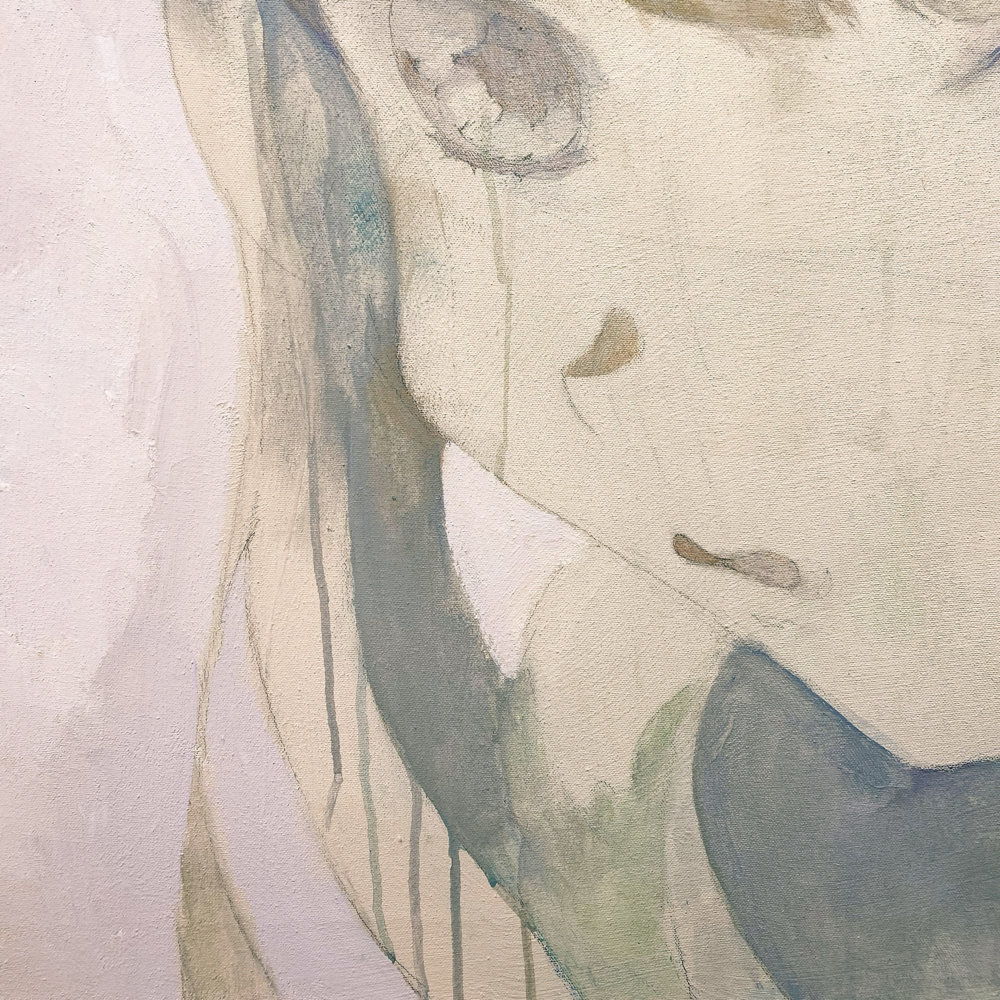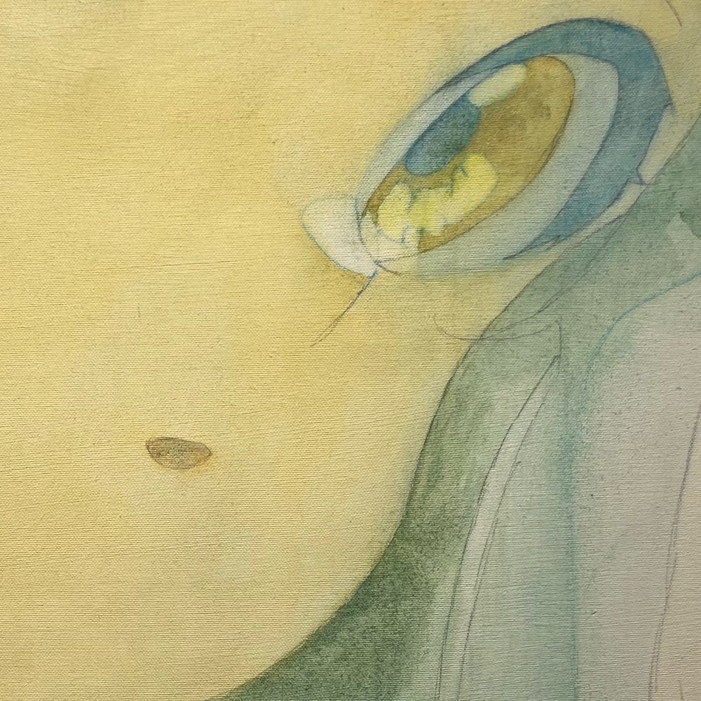 上の部分拡大画像でも、口や顎、頬肉のつき方の表現からキャラクター絵画である、と私は認識してしまうのですが、これこそが、黒﨑さんの作品が私の分類の①でも②③でもないところなのです。