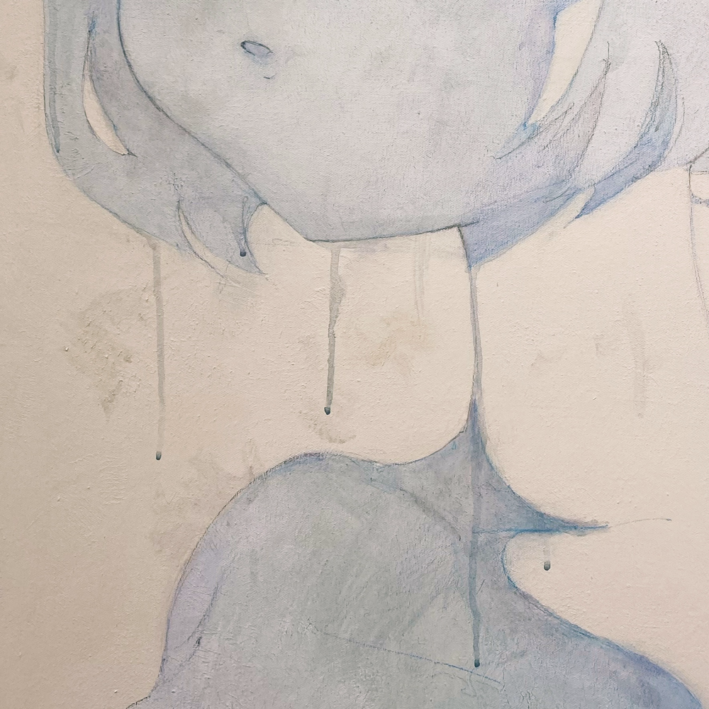 そして、大きめのキャンバス作品《layout_1》《layout_2》《layered_1》《layered_2》に描かれているキャラクターは皆、泣いているように見えるのですが、これは黒﨑さんが命題としている「消費」ということに関係があるのでしょうか? 「消費」されて泣いている?