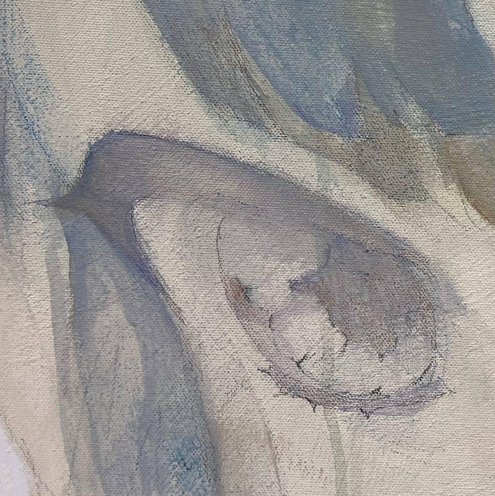 絵の具の特性を活かしている、と私が言う部分は、絵の具の滲みや掠れの部分です。