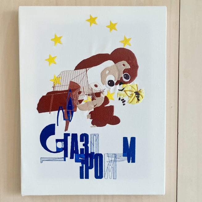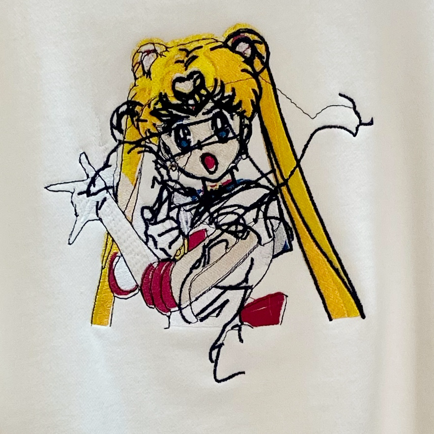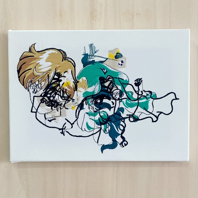 Nukemeさんの作品やステートメント、キャプションの言葉からは、現代社会に対する分析的な鋭い視線が感じられます。作品自体が、「グリッチ刺繍」を介した企業ロゴやキャラクターの解体、というのは必然なのかもしれません。