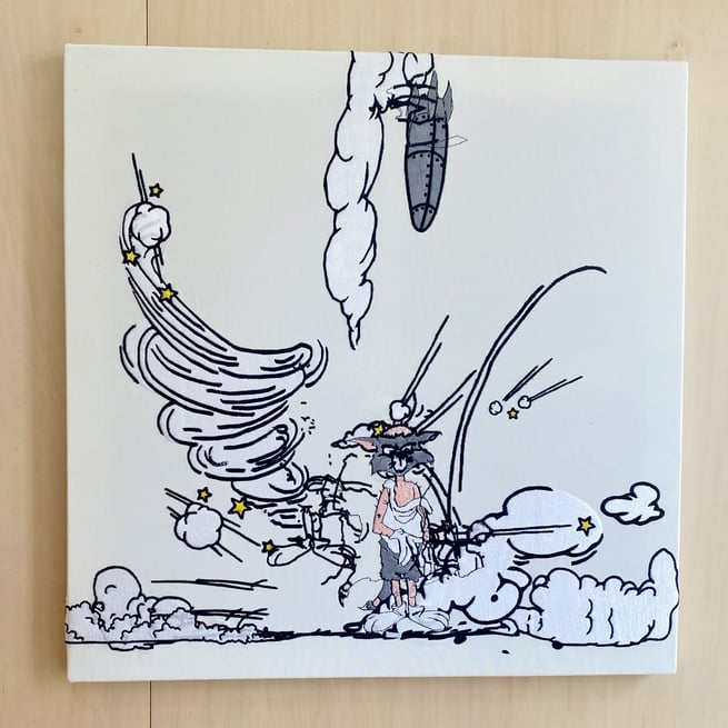 しかし、本展の Nukeme さんの作品に登場する企業ロゴを、何も見ずに思い出して描け、と言われたらおそらく全然描けないです。ルーニー・テューンズは好きだったとはいえ、正直自分でも「ワイリー・コヨーテ」の名前が良く出てきたな、みたいなところもあります。それくらい、ワーナー・ブラザースのキャラクターはどこか似てるし、そもそもアニメキャラクターは動くので、描かれる表情とか角度は無限にあるのに「あのキャラクターだ」というのが分かる最低限の何かというのが存在している、ということになります。