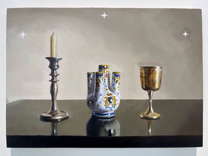 それぞれの静物と作品タイトルにはエピソードがあります。下北沢アーツに行くと詳しく解説いただけるので全部はここには書きません (可能なら現地に行って観ながら聞いてほしい) 。まずは画像をご堪能ください。めっちゃ良いです。