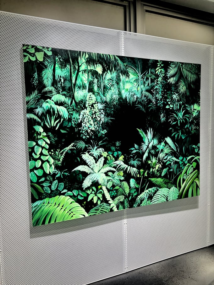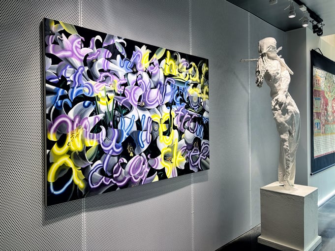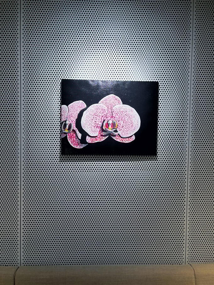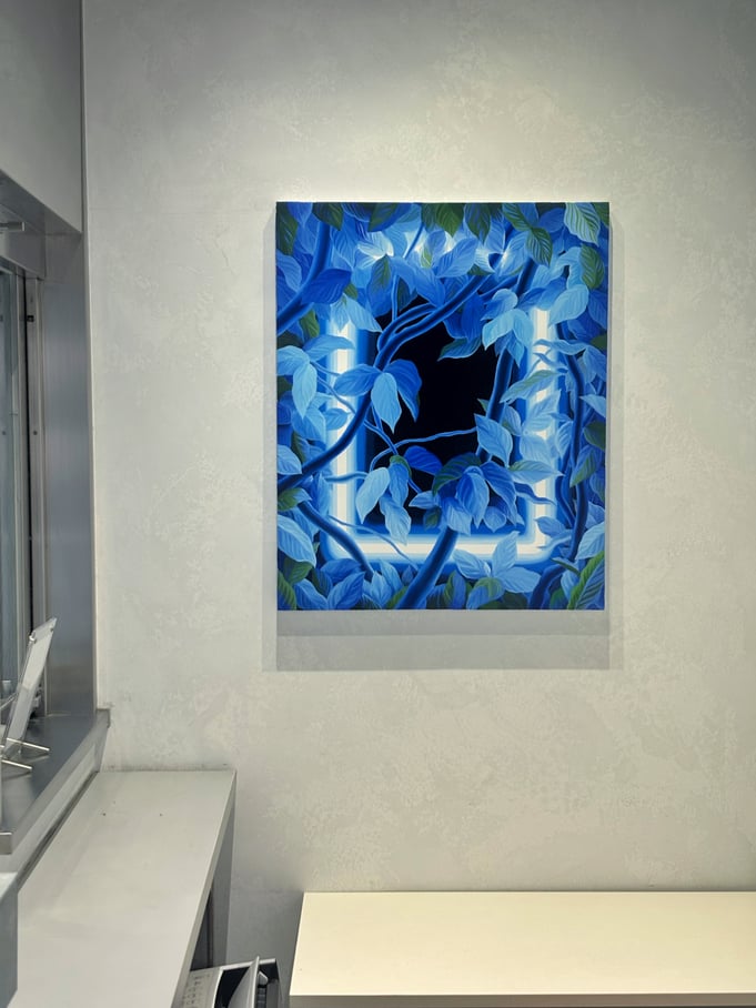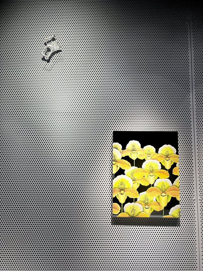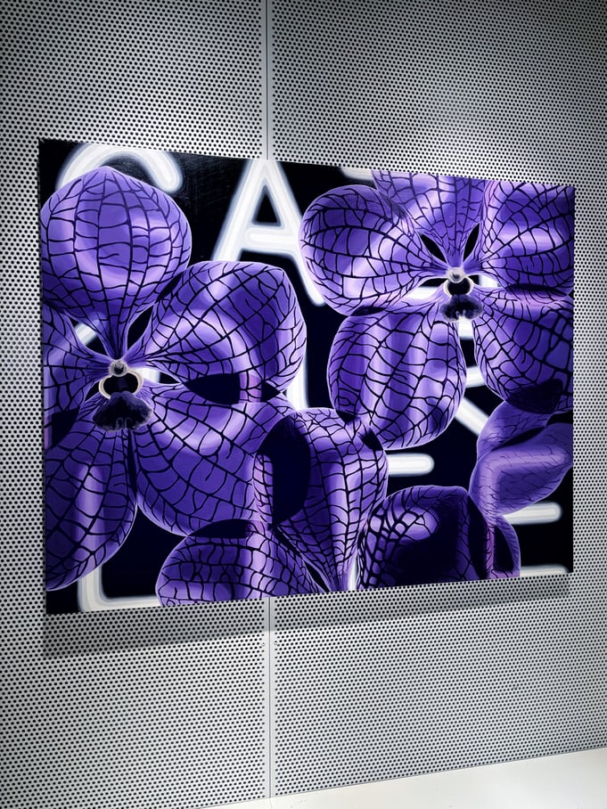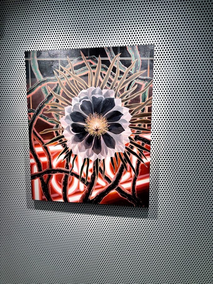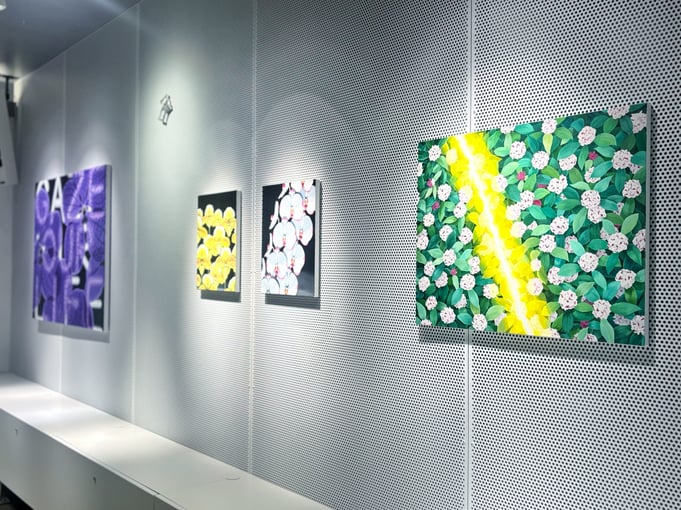 長谷川由貴さんの作品は、意志が宿っているかのように鑑賞者側を見つめる植物が印象的です。色彩や構図は、ストリートアートやファッション雑誌の1ページ、あるいは琳派を想起させます。ジョージア・オキーフとはまた違って、性的に解釈される余地はありません。