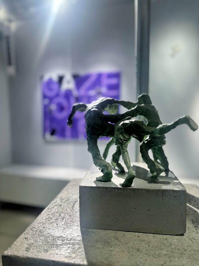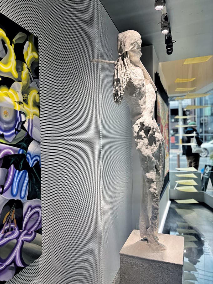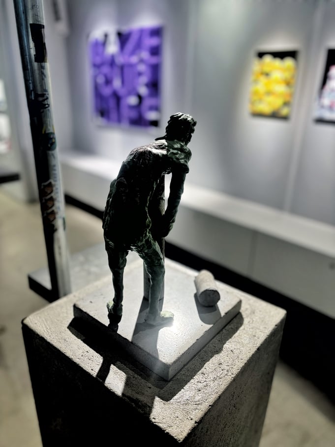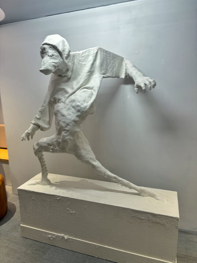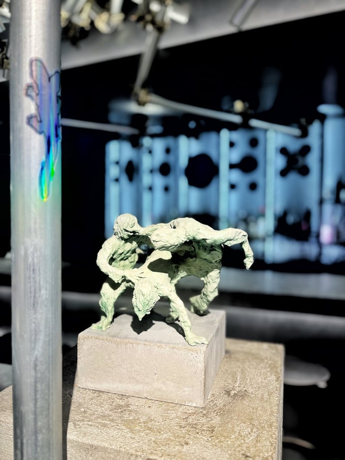 米村優人さんの作品は、どこかで見たことがあるような彫刻やキャラクターを彷彿とさせる雰囲気を漂わせつつもオリジナルな造形です。諦観とユーモアとかっこよさが感じられる立体作品でした。上位存在、ってこんな姿形をしているのかもしれない、、、?